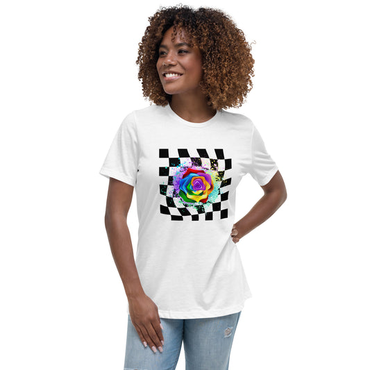 Checkered Paint Splatter Rose Women's Relaxed T-Shirt