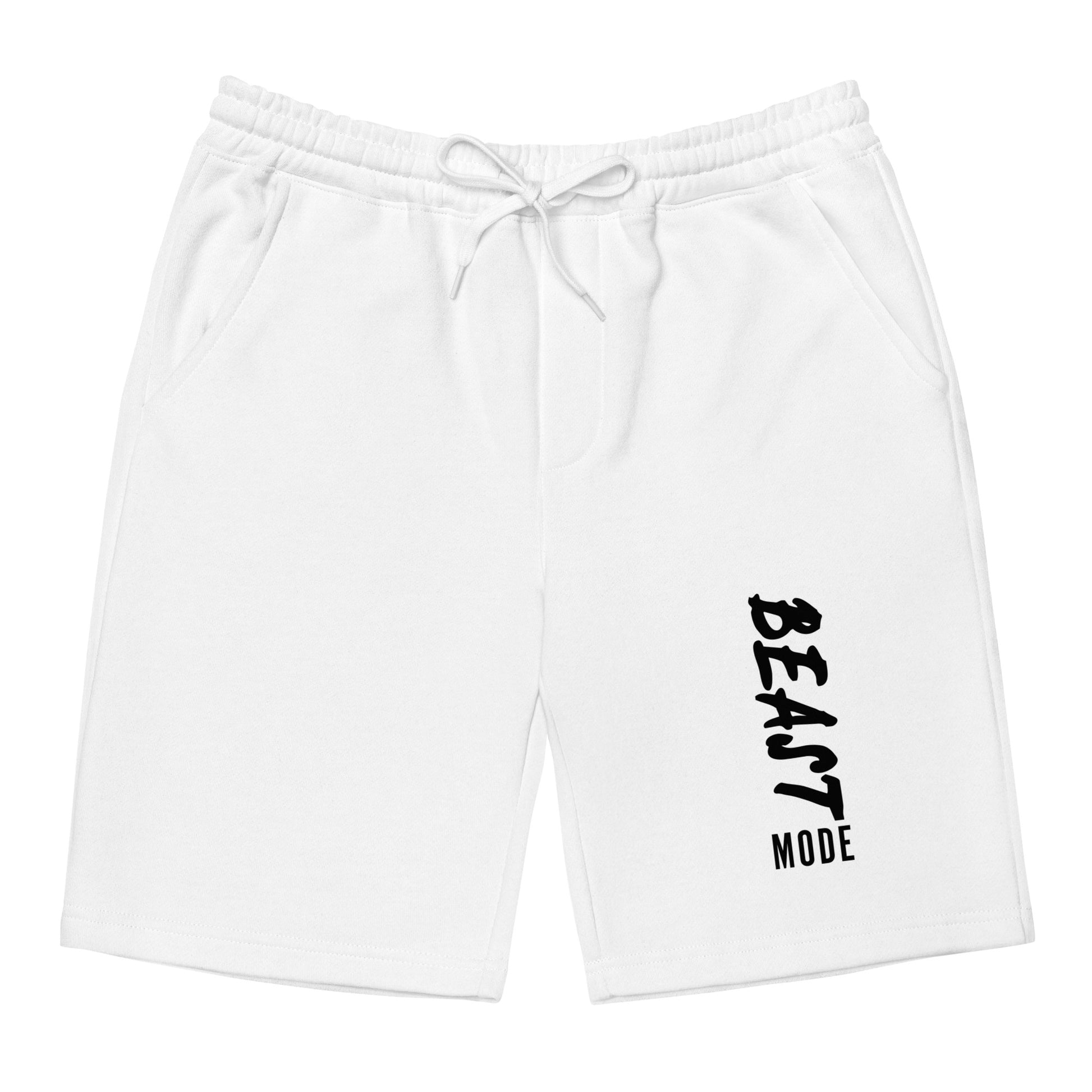 Beast Mode engaged. Come with me if you want to lift. The men’s fleece shorts are soft, comfy, and great for lounging indoors or going out. The shorts have 1 back pocket, 2 jersey-lined hand pockets, and an elastic waistband with a shoestring drawcord.