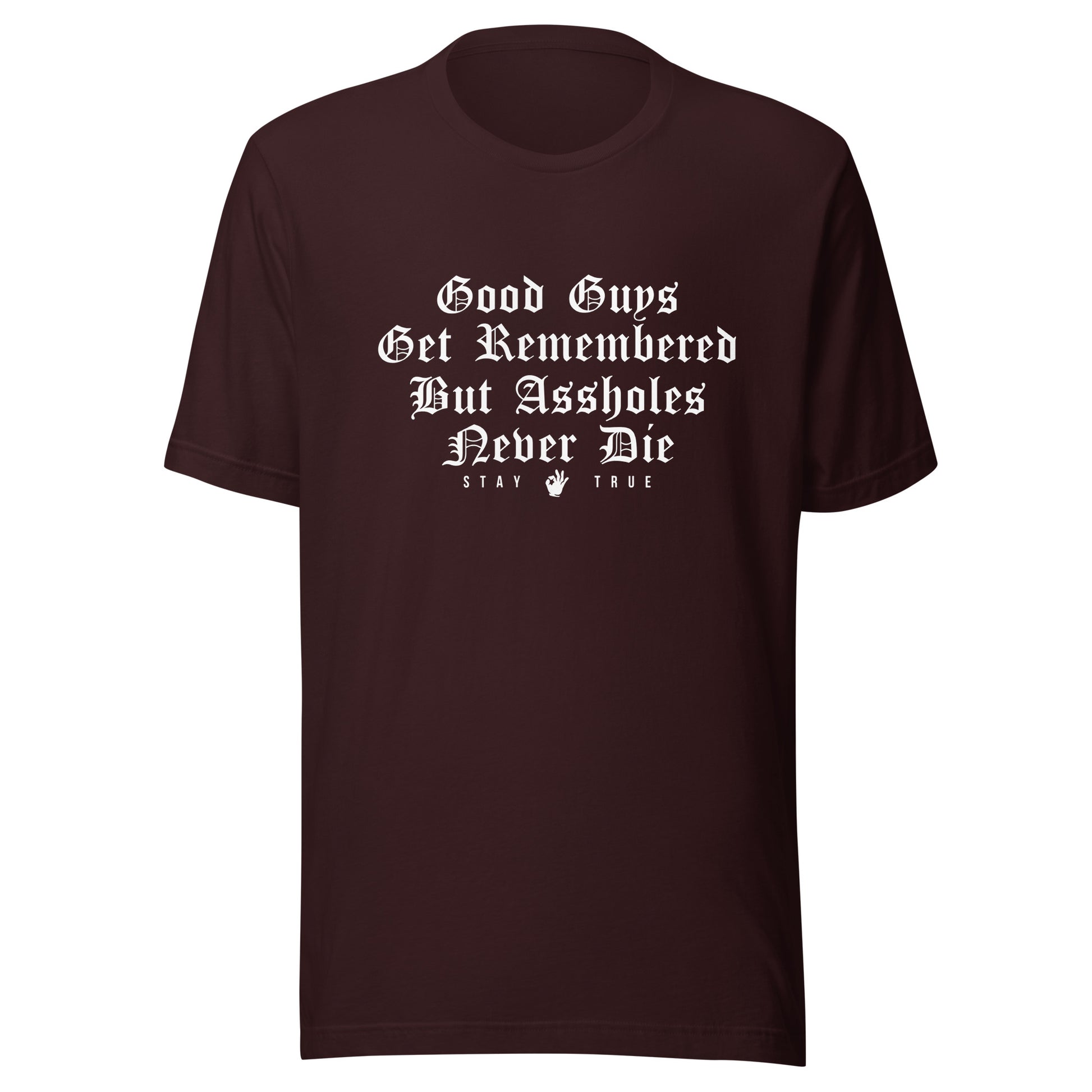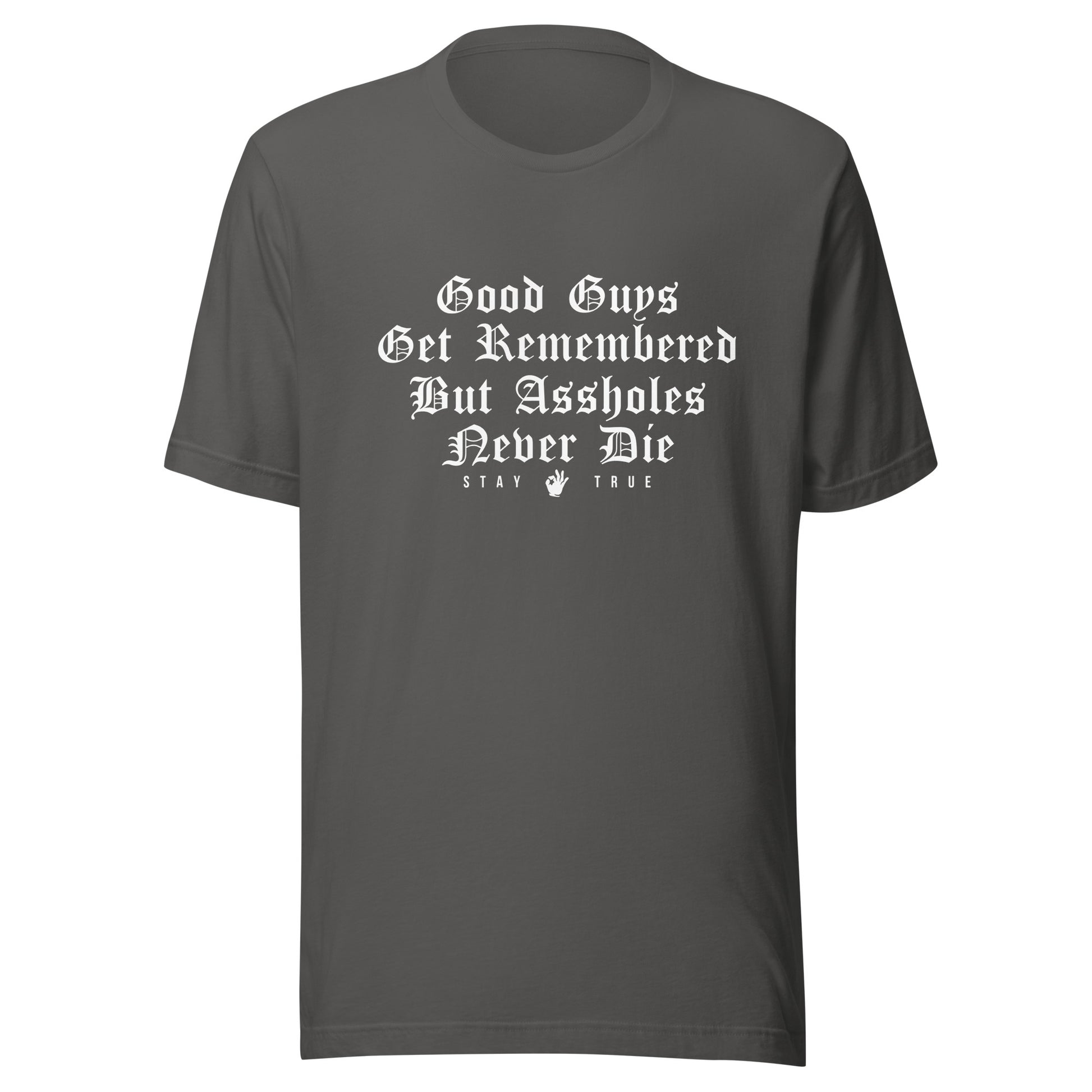 Good Guys Get Remembered. But Assholes Never Die. Unisex t-shirt