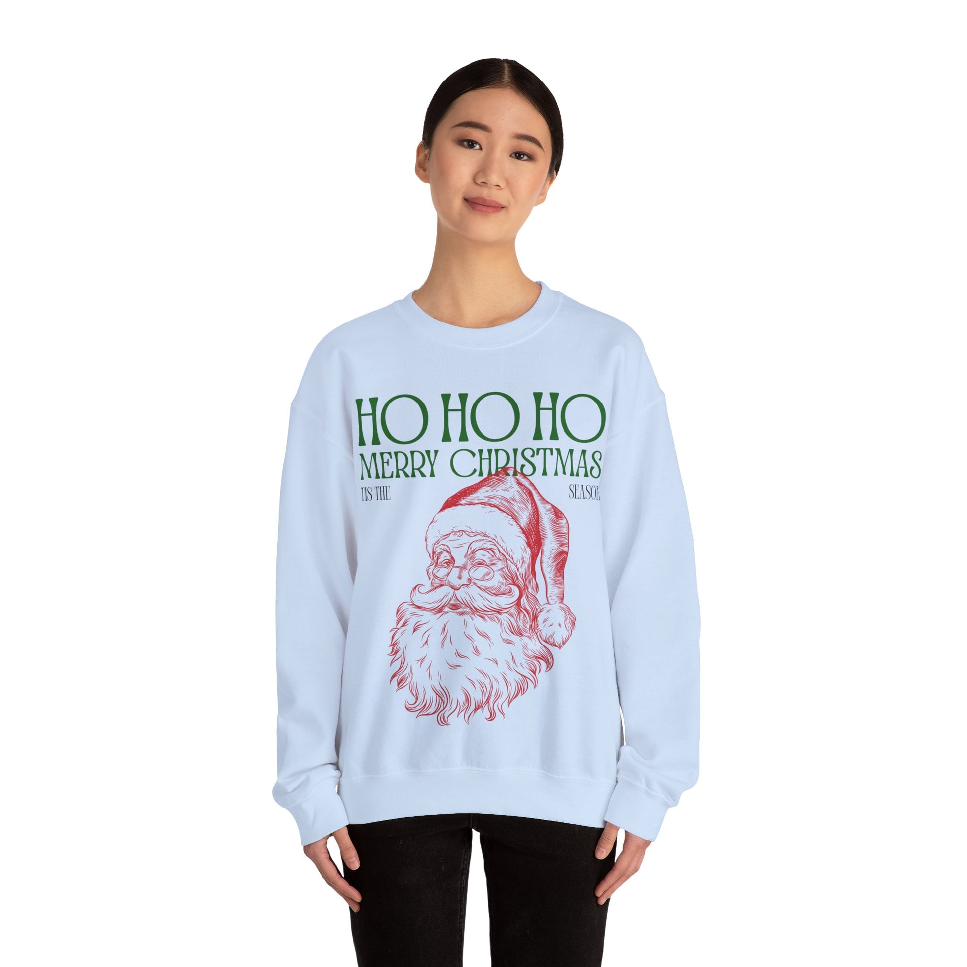 Merry Christmas Santa. Tis the season! The Gildan 18000 sweatshirt is a unisex heavy blend crewneck made from a 50/50 cotton-polyester fabric, combining softness with lasting durability. Its smooth surface supports crisp, vibrant prints and embroidery, while the ribbed-knit collar and reinforced cuffs help it keep its shape over time. A seamless body design reduces irritation and adds to overall comfort. Practical, sturdy, and print-friendly, the Gildan 18000 sweatshirt remains a top choice for custom apparel.